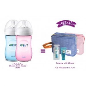 AVENT BIBERON NATURAL 260ML ACHETE + UNIDOSES BIODERMA GEL MOUSSANT ET H2O OFFERTS