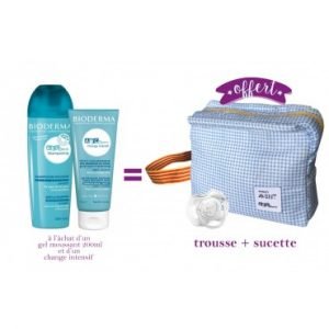 BIODERMA GEL MOUSSANT 200ML ET D’UN CHANGE INTENSIF ACHETE + TROUSSE ET SUCETTE OFFERTS