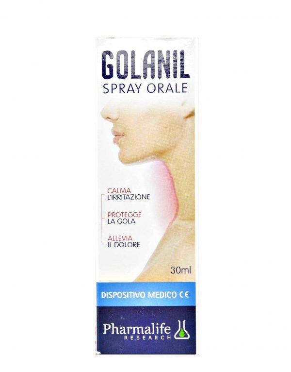 Pharmalife Research Golanil Spray Orale 30ml. GOLANIL ORAL SPRAY est un dispositif médical. Grâce à la synergie de ses ingrédients, il s’agit d’un adjuvant spécifique à action filmogène protectrice contre l’irritation de la gorge.