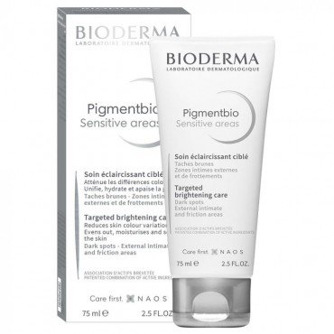 Les premiers soins sur mesure pour les zones intimes Les coudes, les genoux, les aisselles et l’aine peuvent se décolorer au fil du temps, à la suite de frottements répétés ou de l’épilation. Pigmentbio Sensitive Areas contient un ensemble d’ingrédients actifs destinés à prévenir les rougeurs et la formation de taches sombres. »