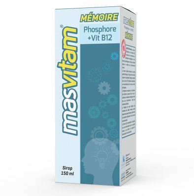 Compléments alimentaireESNAPHARMMasvitam mémoire 150 ml à base de phosphore et de vitamine B12, qui contribue au métabolisme énergétique normal. La vitamine B12 contribue au fonctionnement psychologique normal et au fonctionnement normal du système nerveux, tandis que le phosphore contribue au fonctionnement normal des membranes cellulaires.
