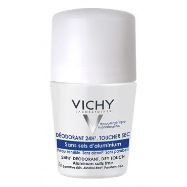 CosmeticsVICHYPeau réactive. Le Roll-on déodorant 24h toucher sec, sans sels d’aluminium. Protège votre peau de l’humidité toute la journée sans sels d’aluminium. Respecte parfaitement toutes les peaux, même les plus sensibles.